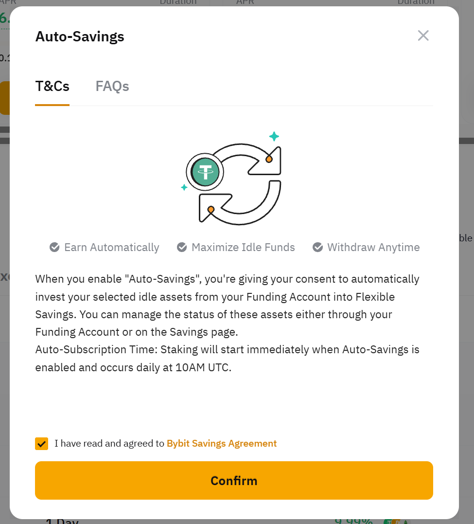 Bước 2: Xem kỹ thông tin chi tiết về Tự Động Sinh Lời, sau đó đánh dấu vào ô đồng ý. Bạn cũng có thể nhấp vào tab Câu Hỏi Thường Gặp để xem thêm thông tin chi tiết.