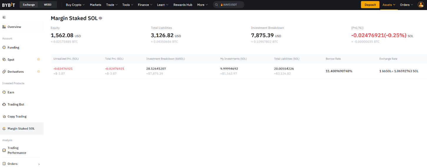 Ngoài ra, trên trang Tài Sản Margin Staked SOL, bạn sẽ có được cái nhìn tổng quan về P&L, nợ, v.v. của mình.