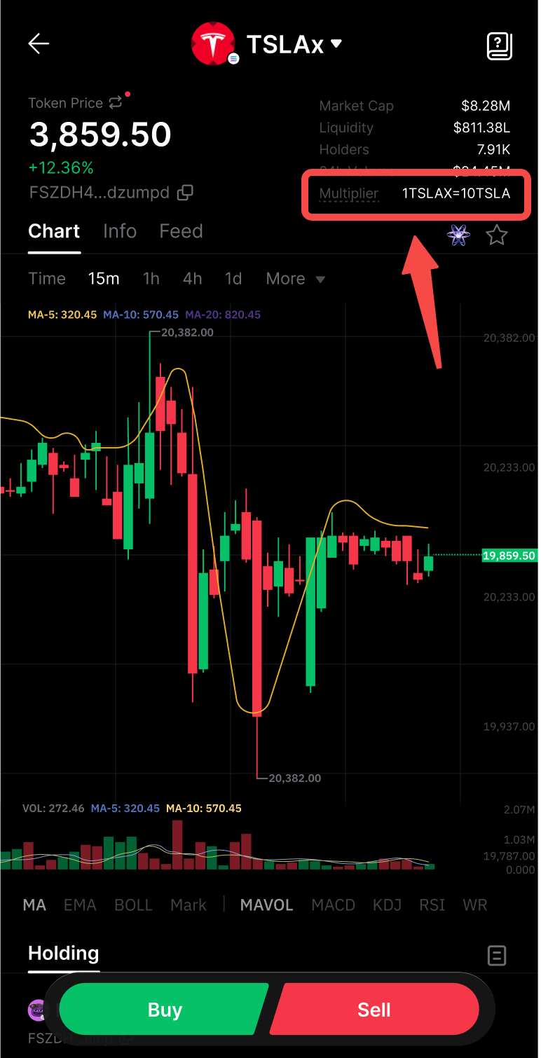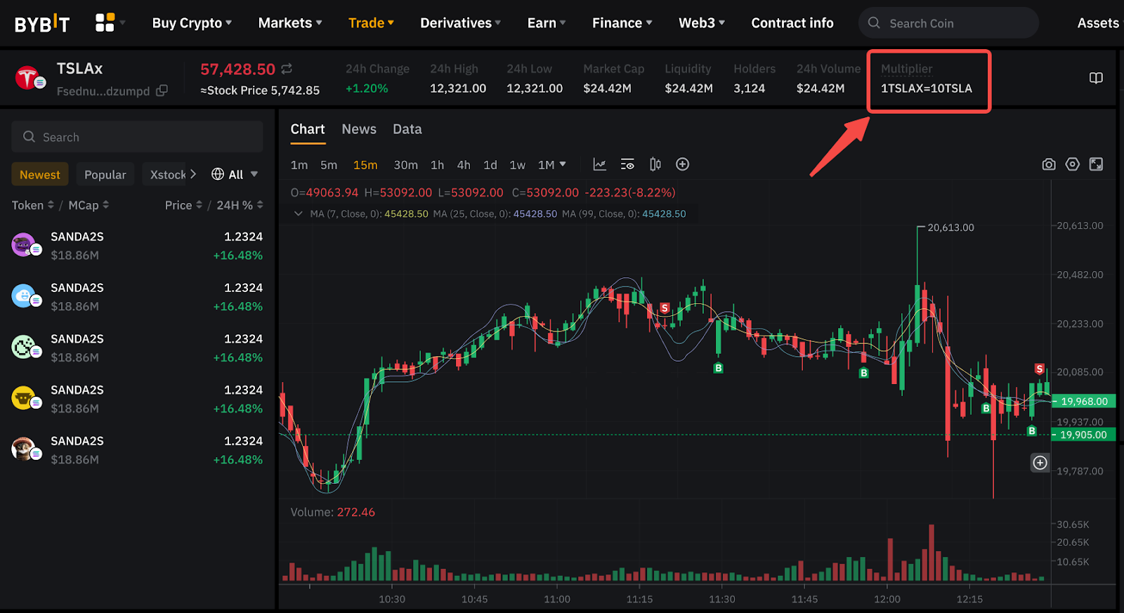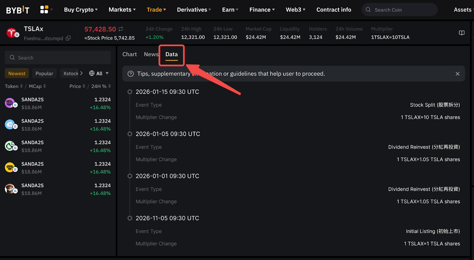 如果您使用的是 Bybit App,請前往 xStocks 交易頁面,在價格資訊附近(圖表上方)找到目前係數區塊。