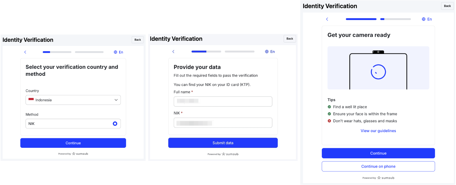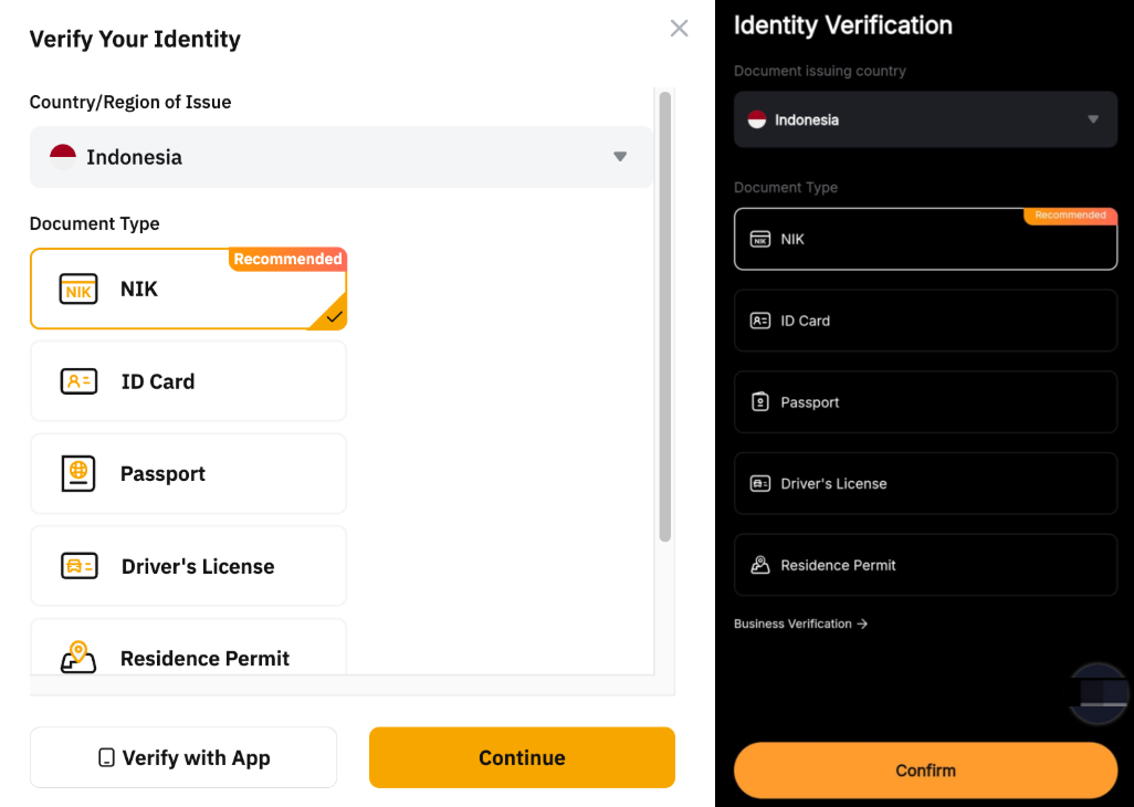 印尼居民可以使用本地證件類型完成身分認證:人口識別號碼(NIK)