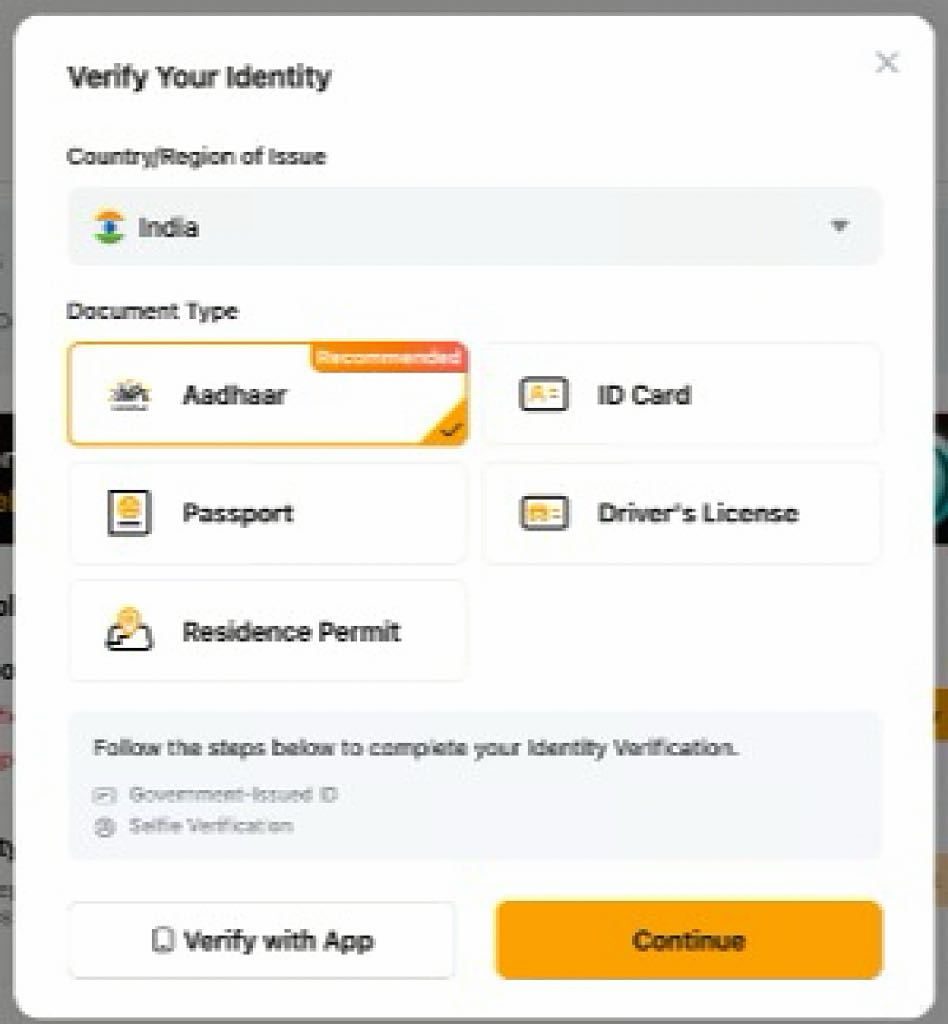 — PAN 只能連結到一個 Bybit 帳戶。 一旦帳戶通過 PAN 驗證,帳戶資訊就無法轉移到另一個帳戶。 如有需要,請在更新身分證件頁面上手動更新您的 KYC 詳細資料。