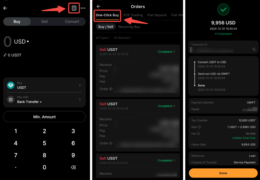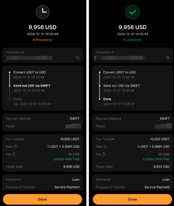 步驟 4: 在訂單記錄 頁面追蹤轉帳狀態。轉帳完成後,您將收到推送通知和電子郵件。