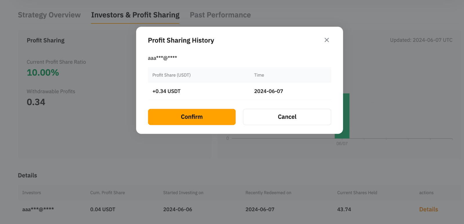 第 2 步:在彈窗中更新您想變更的參數,如分潤比例,然後點擊確認。
