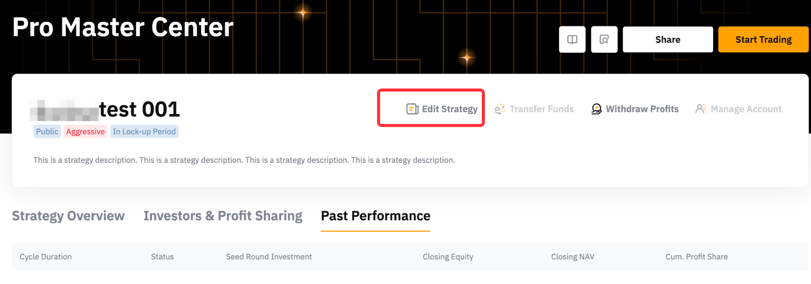 最高和最低投入金額為自動更新,而策略簡介變更須經過人工審核,通常需要 1 至 5 個工作日。但策略名稱無法修改。