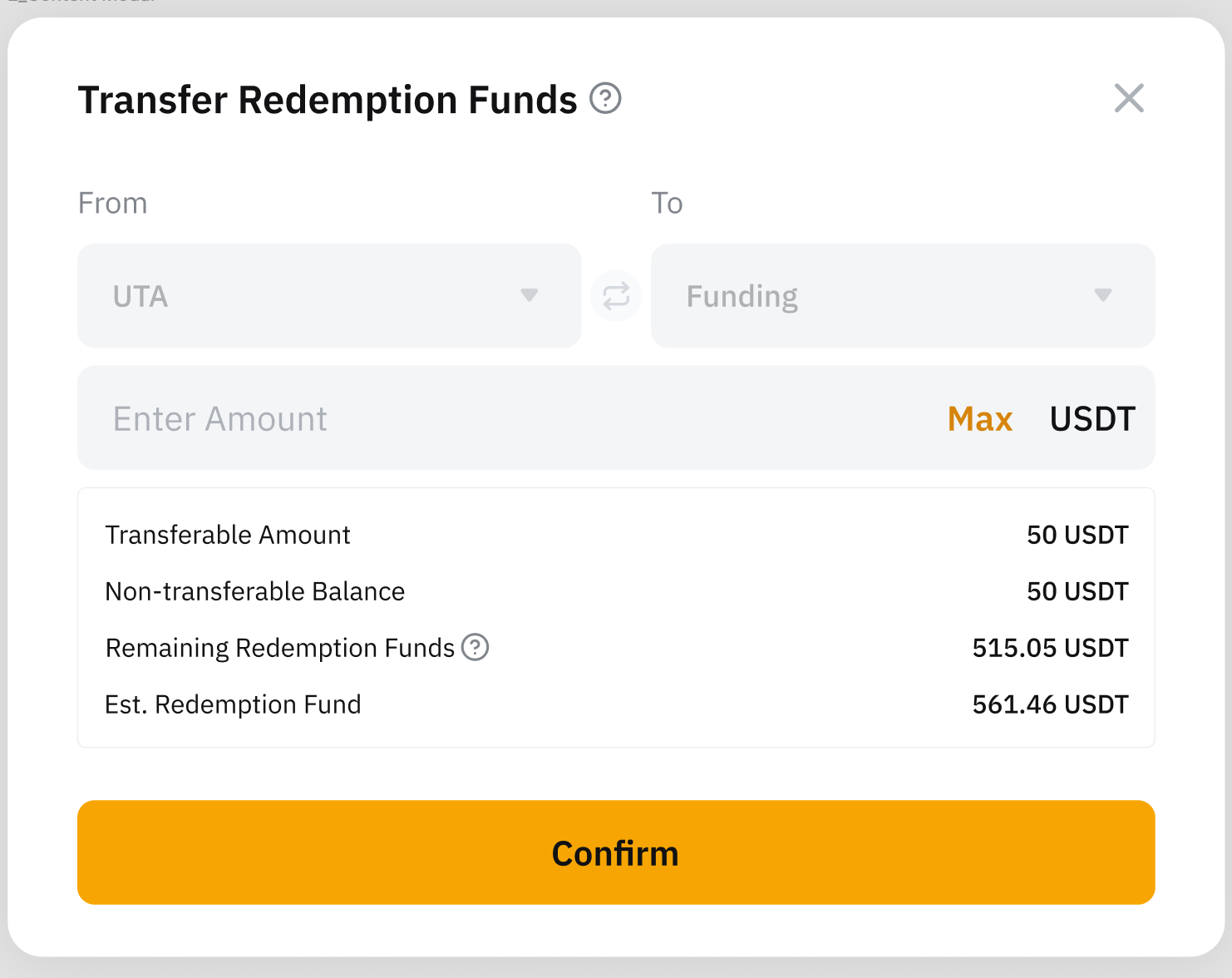 若想在資金不足時贖回資產,您需手動從跟單交易 Pro 子賬戶 (UTA) 中划轉資金至您的資金賬戶。為此,您需按以下步驟操作: