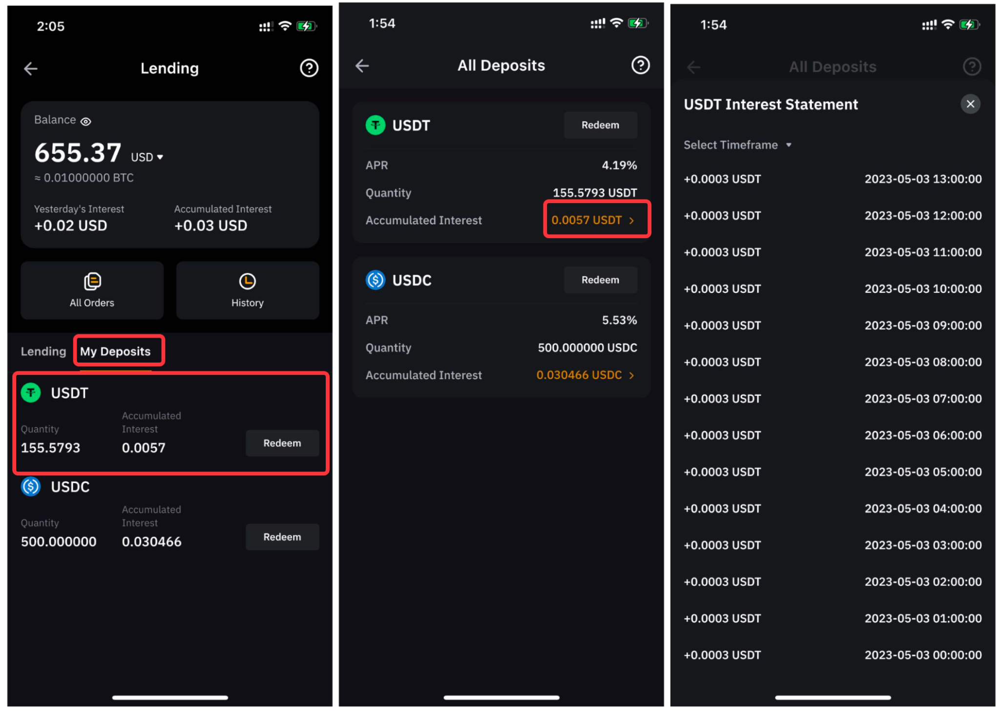 成功贖回後,本金和利息收益將一起發放到您的現貨賬戶或統一交易賬戶(如果賬戶已升級)。