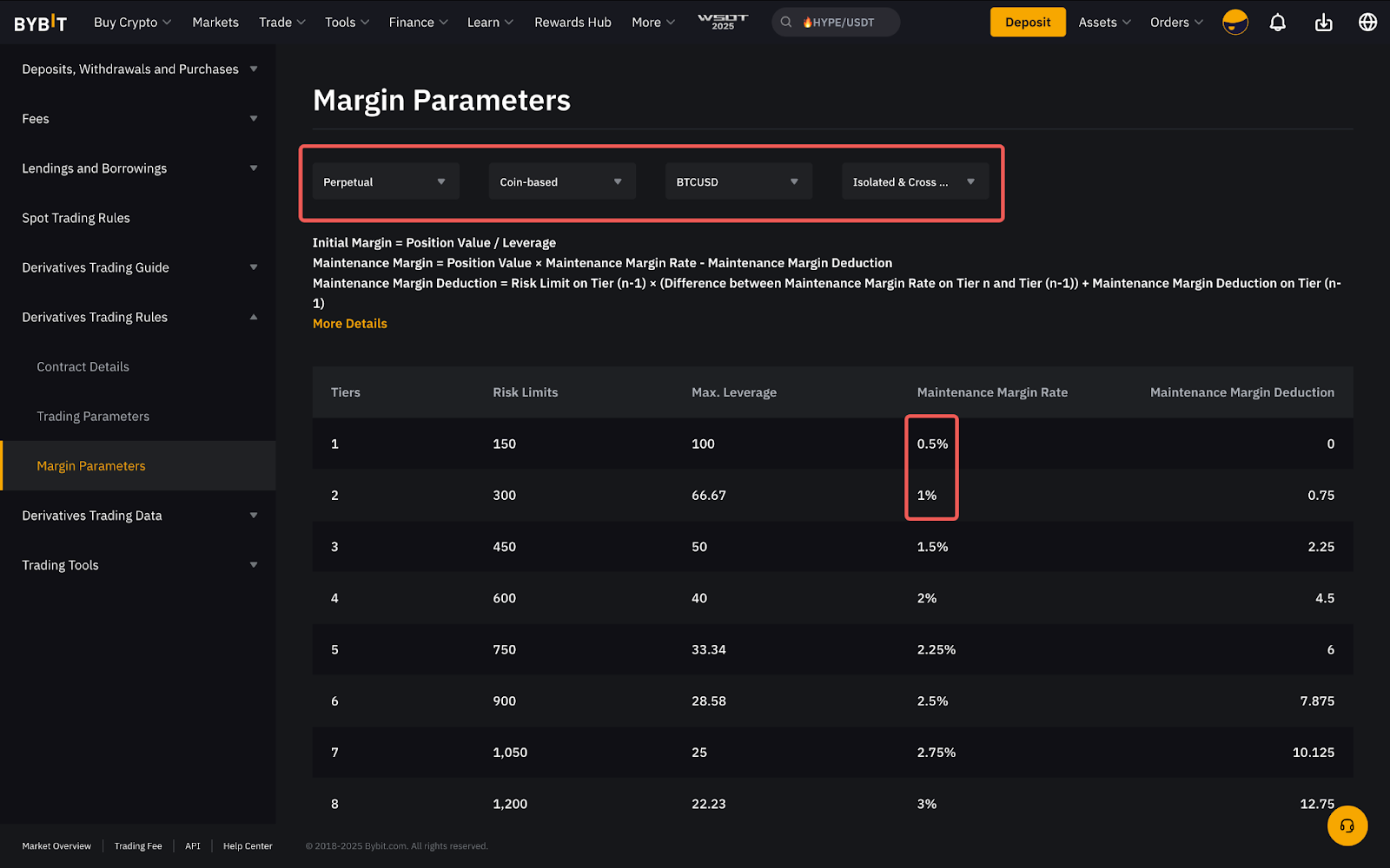每個風險限額等級所需的 MMR 和維持保證金扣除金額可在保證金參數頁面輕鬆找到。